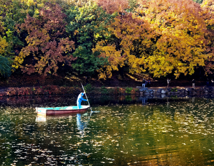为了最美倒影 工人一天打捞落叶300多斤