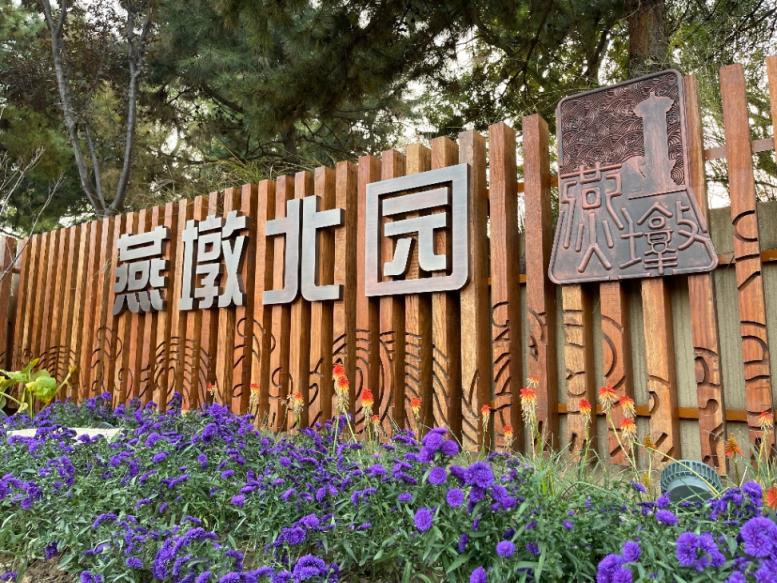 从永定门外大街辅路向西南,古朴的棕色立架上,“燕墩北园”四个字将人们从喧嚣引入静谧之中。燕墩北园占地面积1.2万平方米,环园漫步,银杏、西府海棠、碧桃、黄杨球、萱草等色彩缤纷、高低错落,迎来市民散步休闲。公园里还设置了半场篮球场,近期将安装篮球架供市民活动。