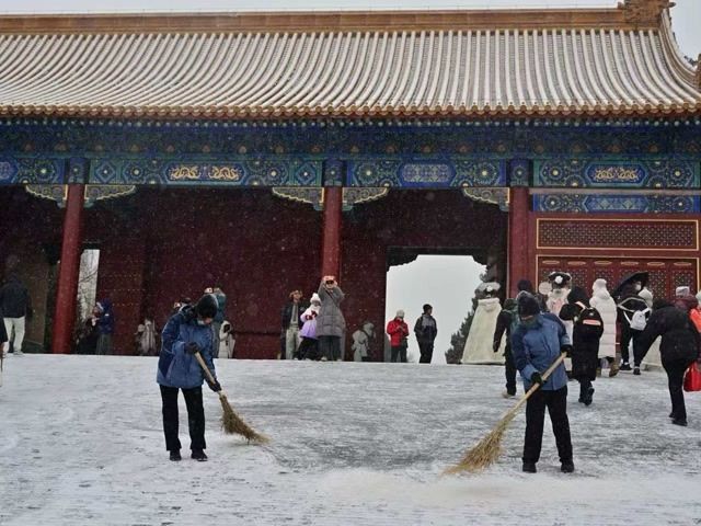 古砖纯靠人工笤帚扫!故宫清雪不毁景