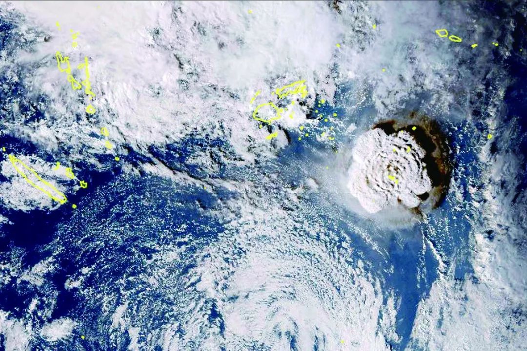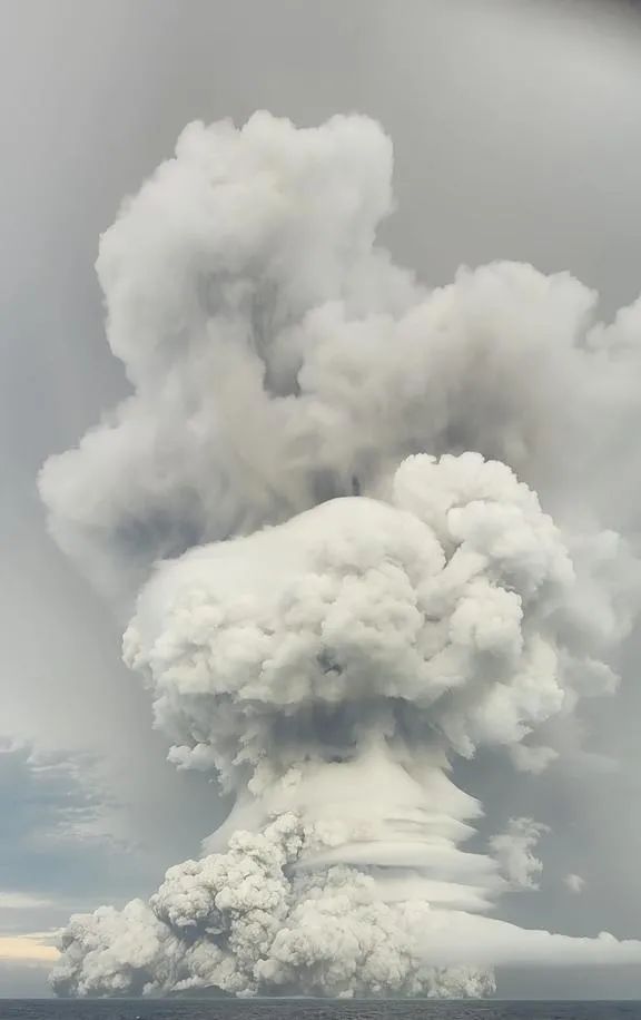 当地时间2022年1月15日,南太平洋岛国汤加一座海底火山14日喷发后,15日再次喷发。