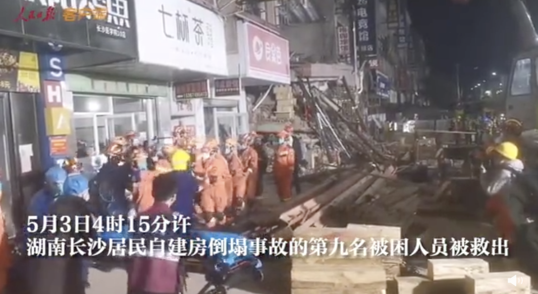 5月1日,湖南长沙居民自建房倒塌事故现场救出第七名被困人员。新华社记者 陈振海 摄