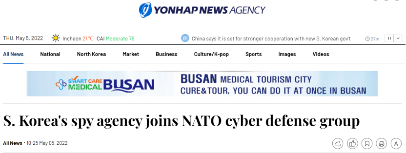 那么,韩国国家情报机构加入北约下属的网络防御组织,到底意味着什么?