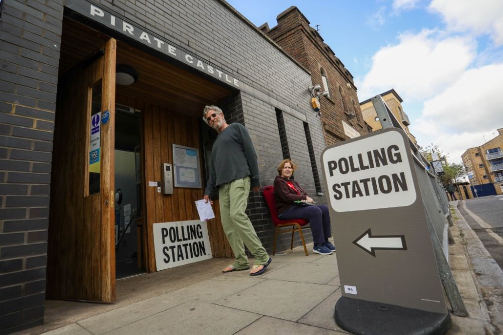 记者5日上午在伦敦一处投票站看到,零零星星有人来投票。