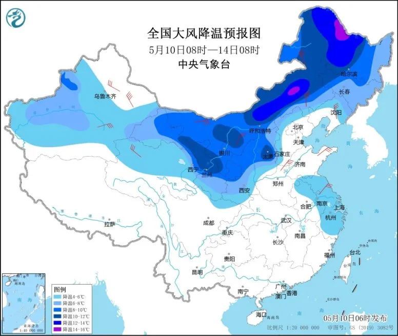 在这股冷空气的影响下,10-14日,东北地区大部、内蒙古、华北北部和西部、西北地区东部和北部、新疆大部以及黄淮南部、江淮、江南东部等地将有4~8℃降温,其中,西北地区东北部、华北西部、内蒙古中东部、东北地区中北部等地部分地区降温可达10℃以上。