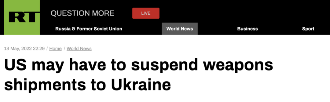 RT:美国可能不得不暂停向乌克兰运送武器