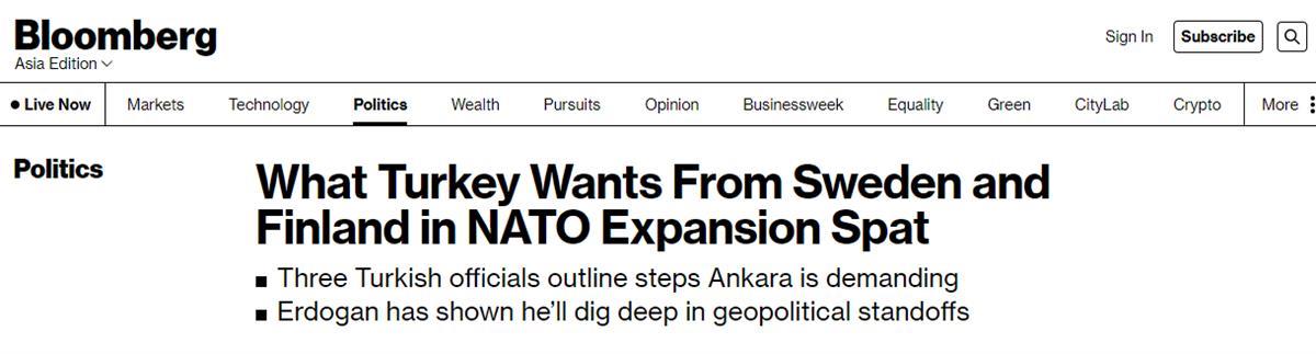 据彭博社5月18日报道,已经有三名土耳其官员透露总统埃尔多安开出的条件,作为同意北约扩张的筹码。