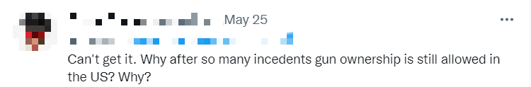 对于得州小学枪击惨案,海外网友也通过社交平台表达了沉痛之情以及对美国政府治理的不满。