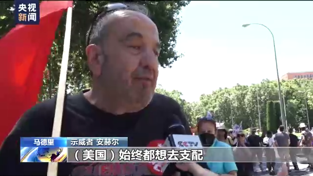 总台记者 魏帆:我现在所在的位置是马德里的格兰维亚大街,主题为“反对北约,支持和平”的游行从马德里的阿托查火车站开始,目的地为市中心的西班牙广场。这次游行吸引了大批的西班牙民众前来参加。