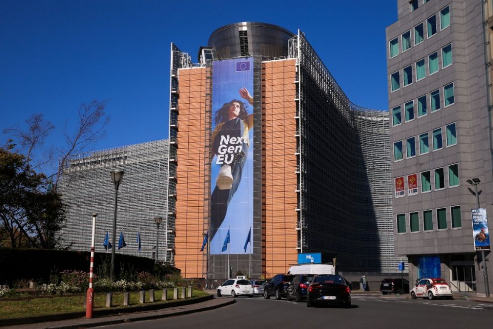 2021年10月8日,车辆经过比利时布鲁塞尔的欧盟委员会总部大厦。新华社记者郑焕松摄