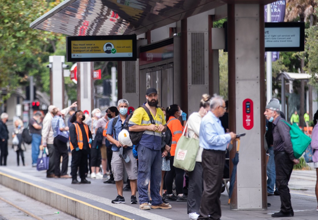 3月30日,在澳大利亚悉尼,人们佩戴口罩出行。新华社发(胡泾辰摄)