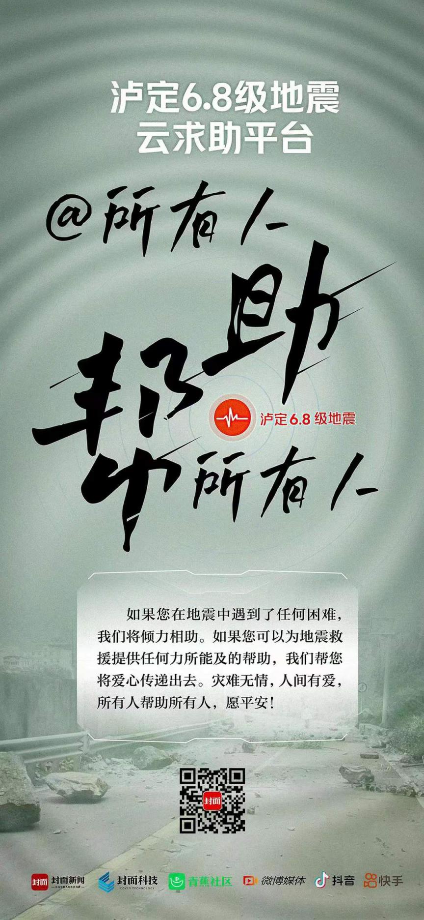 在封面新闻“9.5”泸定地震云求助平台,爱心涌动,传递着希望和力量。救援还在持续,封面新闻将持续为需要帮助和能提供帮助的人搭建桥梁,齐心协力,助阵抗震救灾。