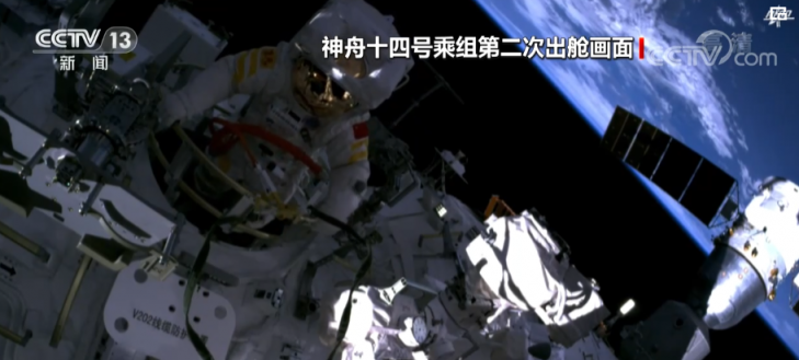 中国航天员中心 航天员系统副总设计师 王春慧:第一次出舱过程中也看到刘洋上机械臂还是有一些困难,上机械臂脚限(位器)的时候,感觉这个位置离她有点远了。这次是蔡旭哲,其实每个人人体尺寸不一样,可能他需要停靠的位置还是有细微差异的,我们针对他上下机械臂的位置包括传递物品的位置,都进行了一些更细致、更优化的设计。