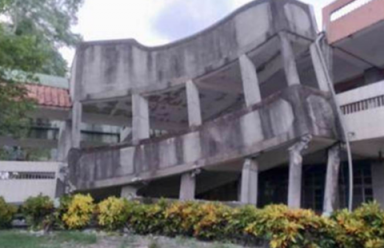 花莲一所小学的校舍发生坍塌。(台媒报道截图)