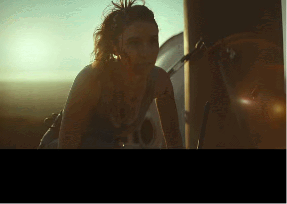 影片结尾处,用了一个非常规的讲述技巧:贝基产生了幻觉,觉得亨特还活着。但其实,亨特在下去捡包时已经摔死了。这个设计让影片有了一丝悬疑片的味道。