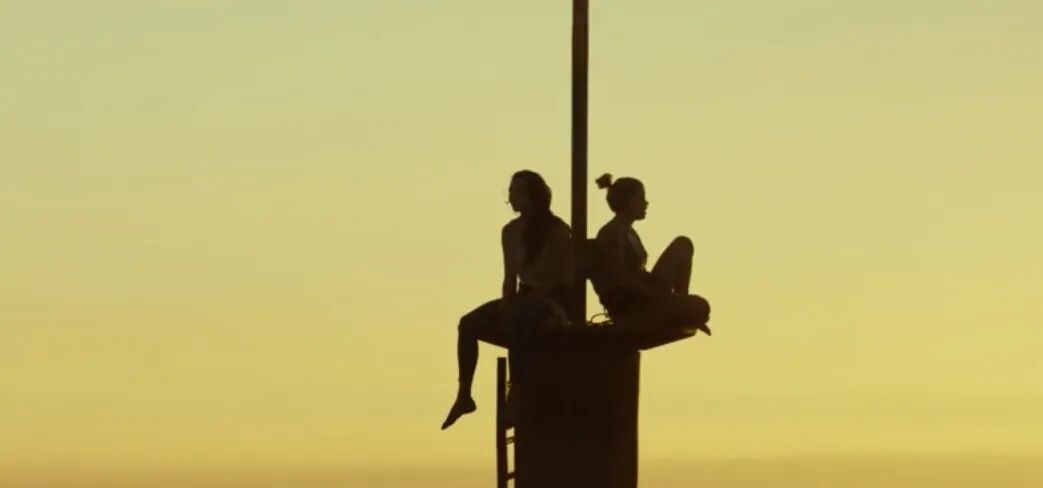 看似简单的电视塔,被创作者分成了三个重要部分:两位女主角站着的仅可容身的平台,装有信号灯的塔尖和下面书包掉落的平台。“捡书包”和“到塔尖给无人机充电”,成为影片中最惊险的环节,看得人胆战心惊。