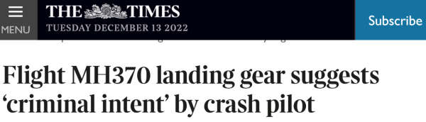 《泰晤士报》报道: MH370航班起落架舱门显示坠机时飞行员有“犯罪意图”