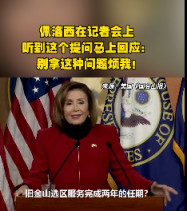 报道称,当天,在每周例行新闻发布会上,佩洛西被问及是否愿意为她所代表的旧金山选区服务完成两年的任期。“这是什么?这是什么?别拿这样的问题来烦我”,佩洛西回答说,“真的,真的,好吧。我说了我将要做什么。你知道么,这种问题完全是在浪费我的时间。”