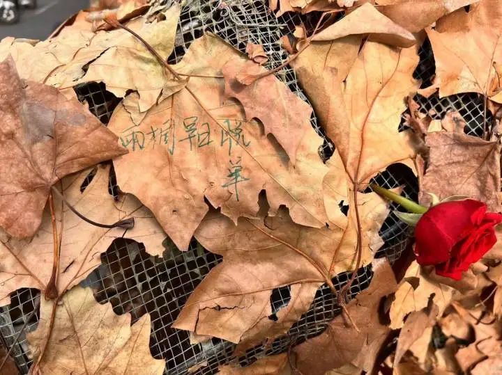 记者看到,在落叶兔的身上,还寄托着不少来打卡的人的希望。落叶上用马克笔写着自己的期望,很多看起来都非常俏皮可爱,“祝潘丹早日脱单”“雨桐早日脱单”“祝爱珍暴富暴美”“祝徒弟早日开上帕拉梅拉”。