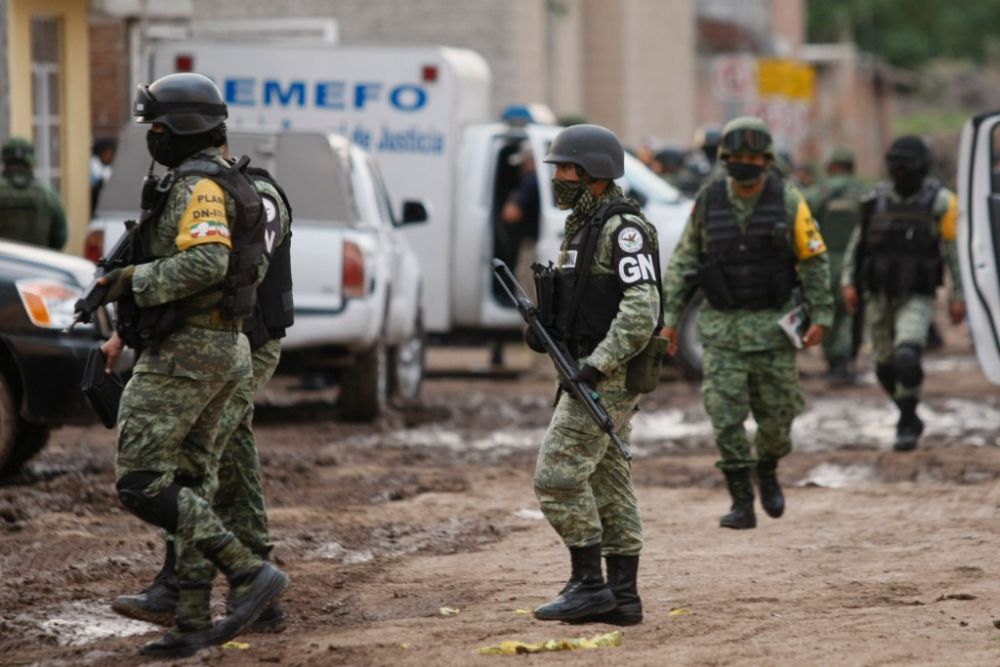 2020年7月1日,墨西哥国民警卫队人员在瓜纳华托州伊拉普阿托市的袭击现场警戒。墨西哥中部瓜纳华托州伊拉普阿托市一戒毒所当天遭武装分子袭击,至少24人死亡。新华社发(马里奥·阿马斯摄)