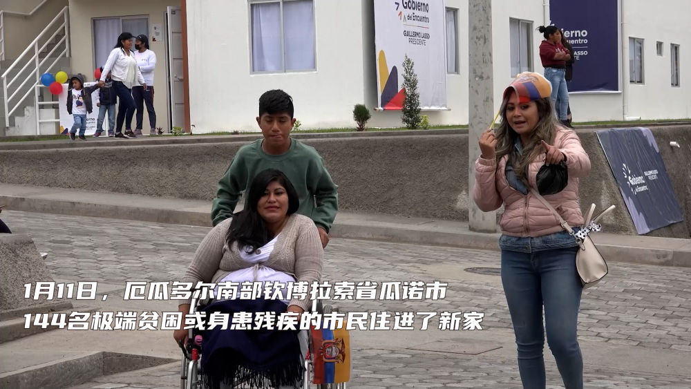 瓜诺市48岁的西尔维娅·马卡斯有两个年幼的孩子,她是保障房项目受益人之一。听闻中国农历新年即将到来,马卡斯举起双手动情地说,感谢中国工程公司为我们设计和建造的美丽小区:“祝愿中国的朋友们春节快乐,这是一份来自厄瓜多尔钦博拉索省的祝福。”