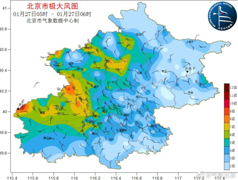 今天是“五九”第一天,北京市气象台2023年1月27日05时45分发布大风蓝色预警信号:目前西部地区已出现7级左右阵风,预计27日09时至19时本市大部分地区有3、4级偏北风,阵风6、7级,山区局地阵风可达8级左右,请注意防范。