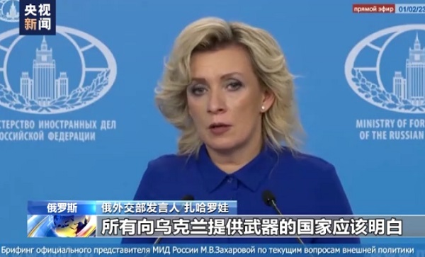 对此,俄罗斯外交部发言人扎哈罗娃2月1日向以色列发出警告。俄外交部发言人扎哈罗娃:我们不会用地理来区分国家,我们要表达的是,所有向乌克兰提供武器的国家应该明白,所有这些武器都将成为俄罗斯武装力量的合法打击目标。