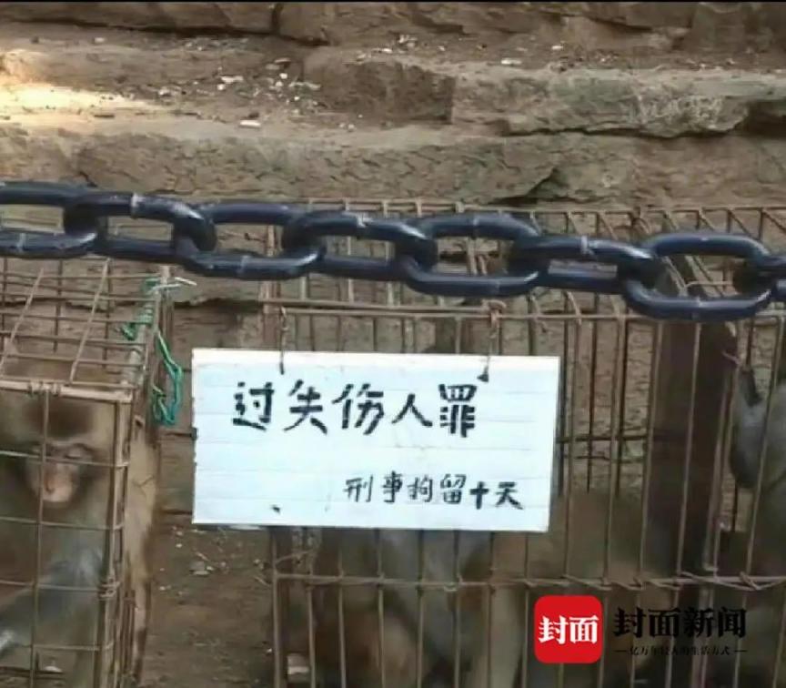 网传图片猴子被关在铁笼内笼上挂有罪行木牌。