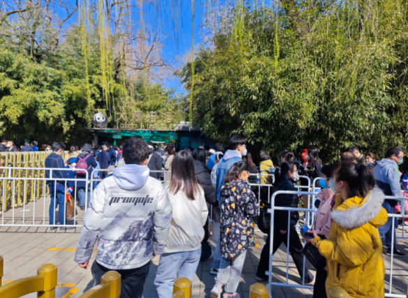 3月12日,寒潮来袭,气温骤降,却阻挡不住游客观看大熊猫的热情。上午10时许,北京动物园大熊猫馆外,排起了上百人的长队,人们沿着围栏等待入场……