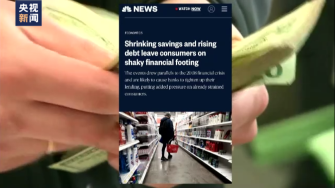 根据美国全国广播公司的分析报道,一旦大量银行收紧贷款,也会给很多储蓄正在缩水的美国民众带来更大的压力。高盛集团估测,截至今年1月中旬,美国民众已经花掉新冠疫情期间储蓄的35%。到今年底,剩下65%的储蓄也可能将被耗尽。与此同时,根据圣路易斯联邦储备银行的数据,美国人背负的债务总额飙升,在美国通胀高企、经济衰退风险加剧下,美国民众陷入财务困境,不断减少消费,随之而来的是企业销售业绩的下降,进而可能会引发裁员,持续冲击美国就业市场,导致美国经济下滑。