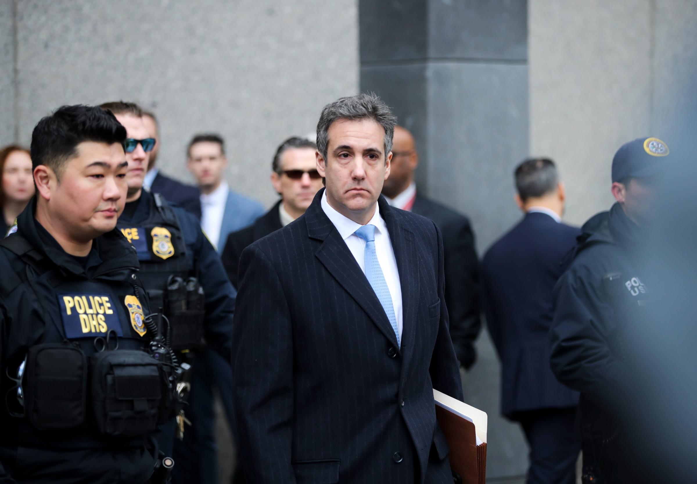 2018年12月12日,特朗普前私人律师科亨(中)走出纽约曼哈顿联邦地区法院。当日,科亨在纽约曼哈顿联邦地区法院被判三年监禁。新华社记者王迎摄