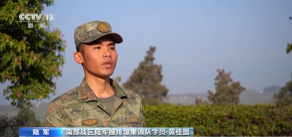 南部战区陆军搜排爆集训队学员 黄佳盟:以前说到扫雷排爆,脑海里想到的就是人工搜排,没想到现在排爆手段这么先进了,深刻感受到国家和军队的科技进步,我们未来开展排爆工作的安全更能得到保障了。