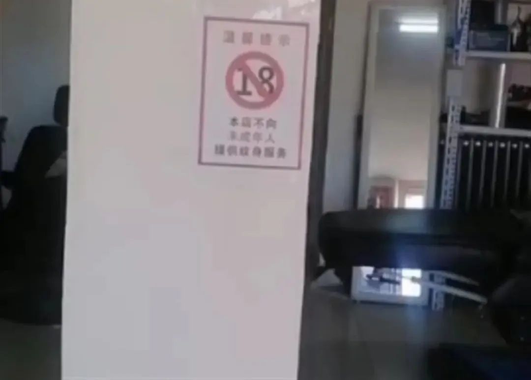 这家文身刺青店老板王先生说,他们的店在河北承德双桥区,监控中的工作人员是他的合伙人,他们从事文身工作已十多年,一直坚持不给未成年人文身,并在店内显眼位置专门贴了一张提示标语写道“本店不向未成年人提供文身服务”。