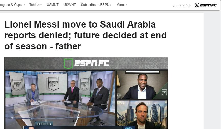 美国娱乐与体育电视网(ESPN)报道梅西父亲发文否认与任何球队达成协议。