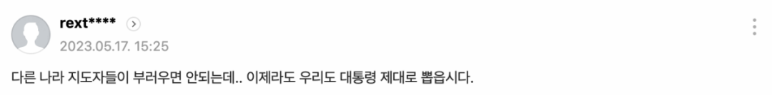 还有部分韩网友联想到韩总统尹锡悦,留言称,“不能羡慕其他国家的领导人。哪怕就从现在开始,我们也好好选选总统吧”、“尹锡悦你看了之后有什么感受吗?说劈开腿不都是在骂人。学学吧”。↓