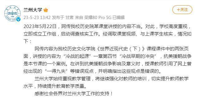 (原标题:兰州大学回应网传历史院某课堂讲授内容不当)