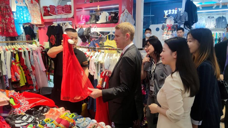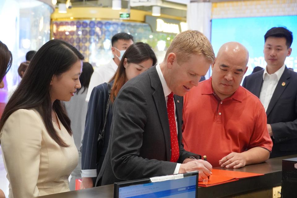 6月26日下午,新西兰总理克里斯·希普金斯一行光临秀水街,选购心仪的商品,感受民间文化交流的热情,并欣然为秀水街签字留言,“感谢(秀水街)带来这一次非常愉快的购物体验”。