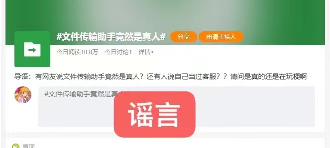 (原标题:“文件传输助手”竟然是真人?微信团队紧急辟谣)