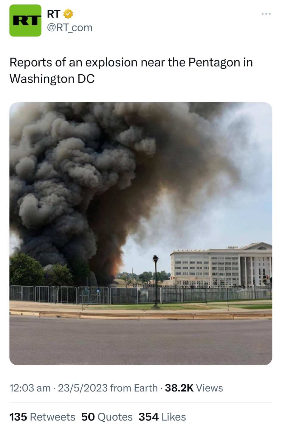 上月,美国发生了一件AI造假的典型案例,一张“五角大楼附近发生爆炸”的图片在社交媒体上疯传,一度导致美国股市明显下挫。事后,美国国防部发言人紧急出面表示,当日上午五角大楼附近并未发生爆炸。