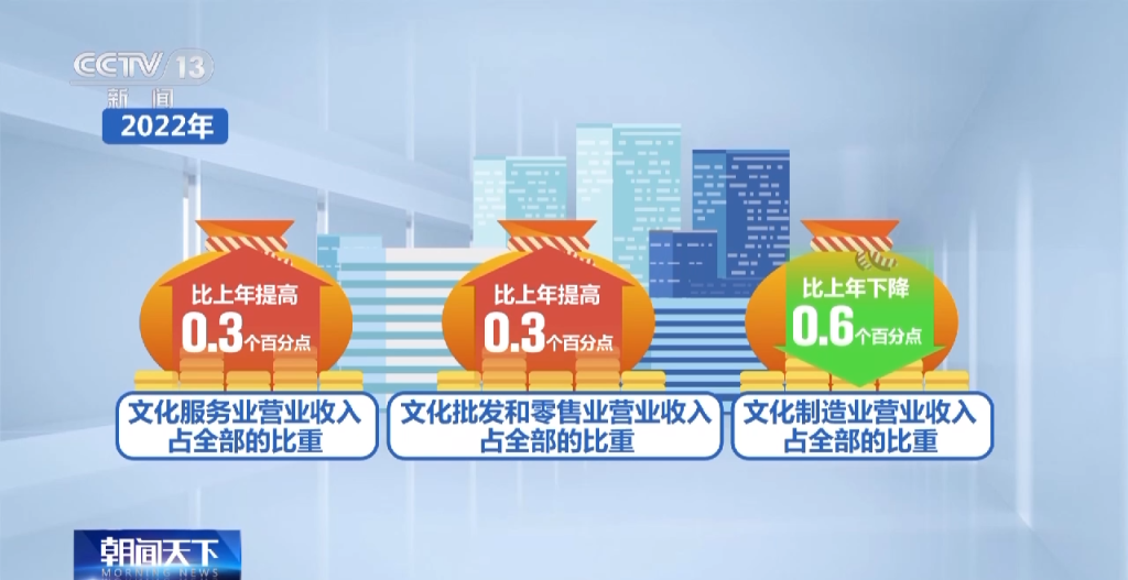 在此推动下,我国文化产业的结构不断优化。具体看,文化服务业营业收入占全部的比重比上年提高0.3个百分点;文化批发和零售业所占比重比上年提高0.3个百分点;文化制造业所占比重比上年下降0.6个百分点。