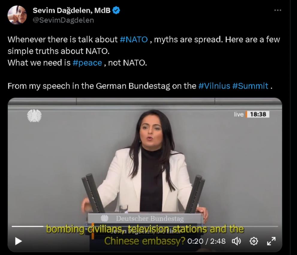 近日,德国联邦议院的左翼党派议员塞维姆·达代伦(Sevim Dağdelen)在一场直击人心的发言中,毫不留情地揭穿了北约这个服务于美国霸权的军事组织的三个大谎言。