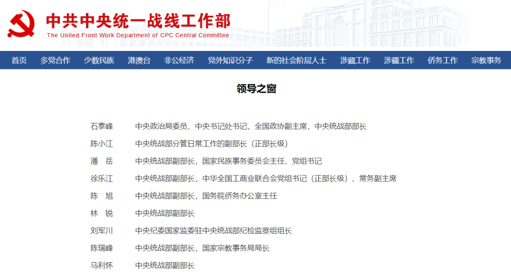 7月19日,中央统战部网站“领导之窗”最新信息显示,马利怀已担任中央统战部副部长。