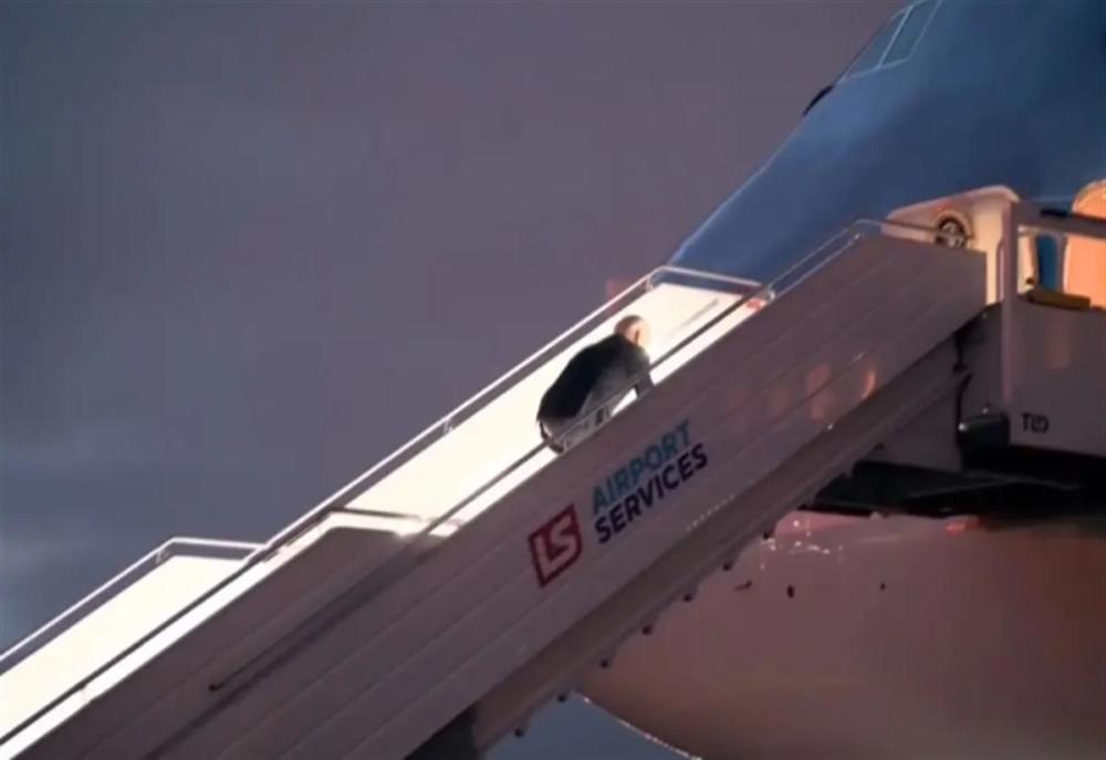 拜登登上空军一号时,使用短楼梯(图源:美联社)
