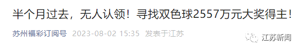 苏州市福利彩票发行中心相关人员表示,市场部工作人员根据福利彩票中心管理系统检索显示,直到8月2日,这张2557万元大奖彩票没有兑奖。