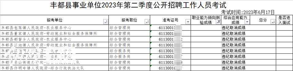 丰都县第二次公布的笔试成绩中多名考生被取消成绩(来源:丰都县人民政府网站)