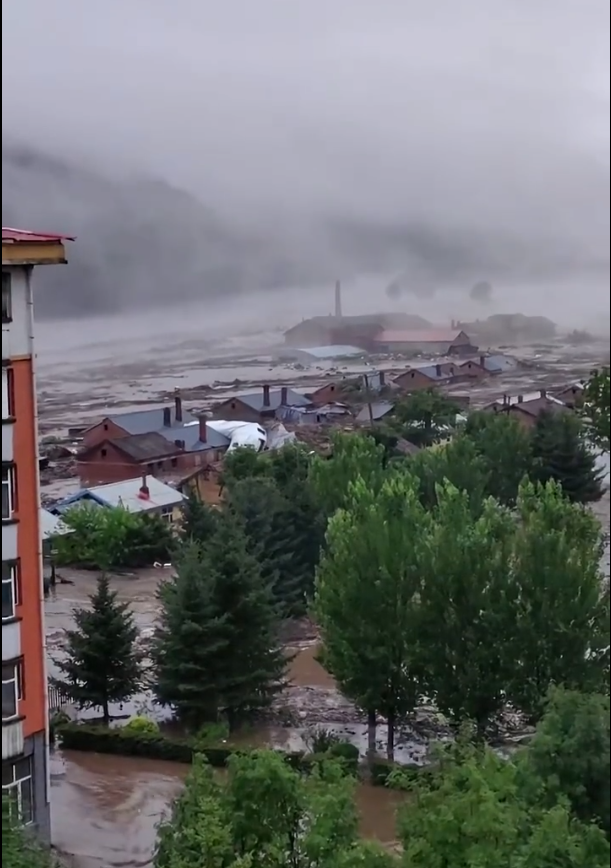 现场视频显示,哈尔滨市阿城区平山镇内一栋房屋院门被部分淹没,另一侧房屋地势较低,洪水已至窗户位置。尚志市帽儿山镇大量房屋泡在洪水中。
