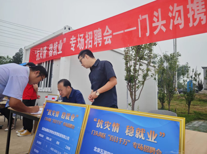 更让人担忧的是,大批的旅游、民宿行业从业者失去了赖以生存的工作岗位,没有了生活来源。门头沟区人力社保局对此高度重视,联合海淀、石景山、西城等其他城区的人力社保局,对灾区群众伸出援助之手,帮他们解决就业问题。