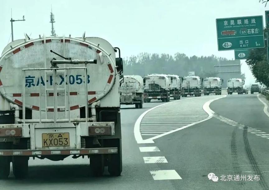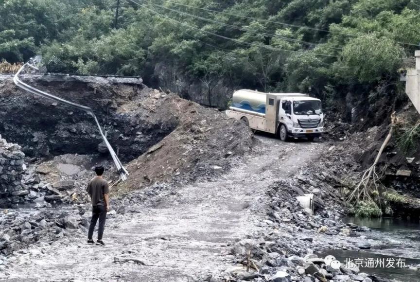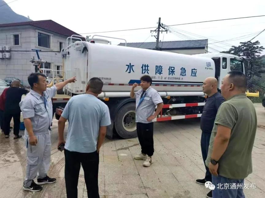 8月4日上午,通州区水务局紧急调派的一辆装满11吨水的应急供水车到达该村,为村民们送去了安全饮用水。