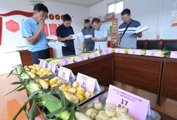 8月12日,2023年京津冀鲜食玉米大会分会在延庆区旧县镇现代农业产业园开幕。当天,在全国范围内征集的京科甜608、万糯2000、农科糯336等149个国内最新培育的鲜食玉米品种亮相。