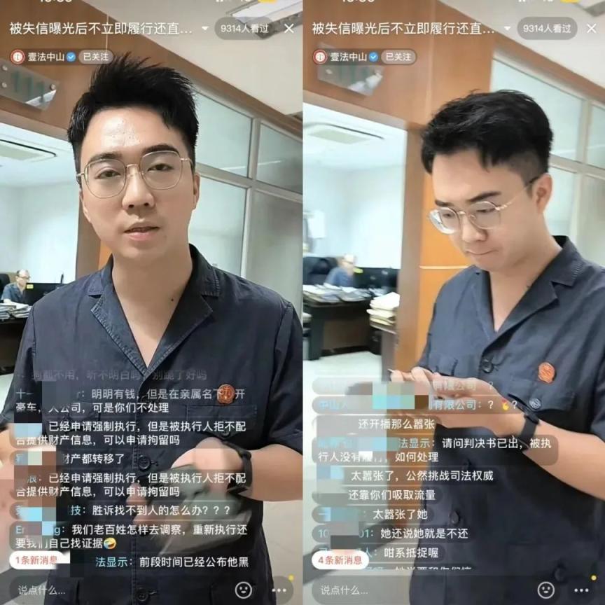 数据显示,今年以来,中山第一法院共发布“失信被执行人”曝光视频9期,引发全网610万关注。1-8月,实施司法拘留50人、罚款7人5.4万元,已结案件执行到位金额约37.26亿元。