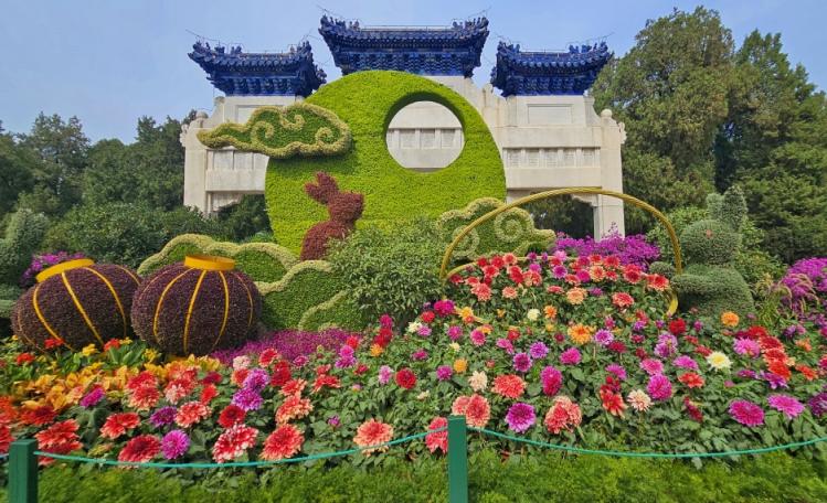 中秋佳节碰上国庆长假,为了烘托喜庆祥和的节日环境气氛,中山公园以“人与自然和谐共生”为主题,布展出“玉兔献礼”立体主题花坛,并开启多项文化活动,喜迎佳节到来。“双节”来中山公园,市民游客还可以一次性欣赏到大丽花、兰花、碧桃、丁香等多种春花、秋花。